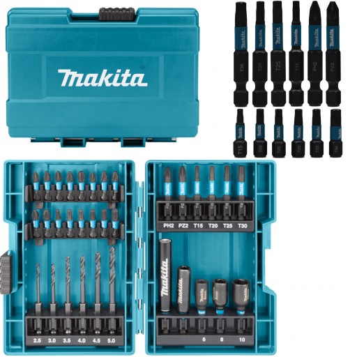 ✅ 33-częściowy zestaw końcówek wkrętakowych udarowych Makita w poręcznym plastikowym pudełku z mechanizmem szybkiego zwalniania.