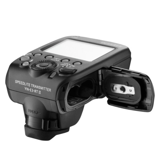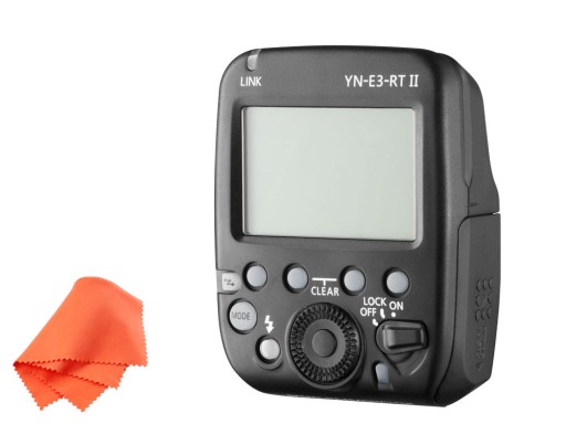 Yongnuo YN-E3-RT II to radiowy sterownik przeznaczony dla systemu Canona, który pozwala na dwukierunkową komunikację między aparatem a lampą. Urządzenie umożliwia sterowanie lampami, Yongnuo 600EX-RTII, Yongnuo 986EX-RT, Canon 600EX-RT w trybie bezprzewodowym, bez dodatkowych odbiorników. Transmiter YN-E3-RT pozwala na pracę w 5 grupach i na 15 kanałach. Transmisja radiowa odbywa się na częstotliwości bazowej 2,4GHz, a zasięg roboczy wynosi do 100m.