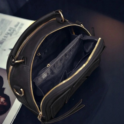 - W środku jedna duża komora, dwie mniejsze kieszonki oraz przegródka zapinana na zamek