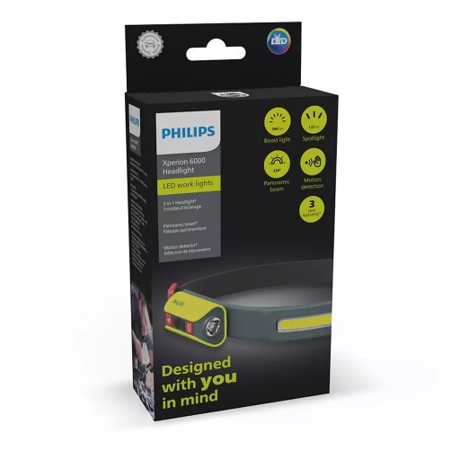 Lampa Philips Xperion 6000 zapewnia panoramiczną wiązkę światła o mocy 300 lumenów. Jego obrotowe światło punktowe o mocy 120 lumenów pozwala dostrzec każdy szczegół. Dodatkowa funkcja wykrywania ruchu sprawia, że jest to uniwersalne narzędzie, które nie wymaga użycia rąk.