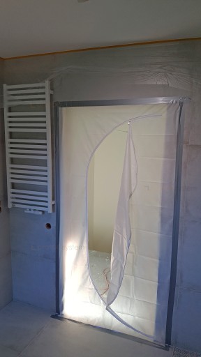 - Drzwi przeciwpyłowe wykonane z włókniny polipropylenowej.