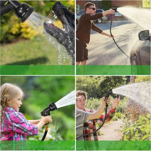 Prezentowany wąż ogrodowy posiada pistolet obsługujący 8 funkcji: