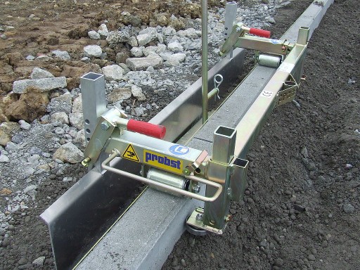 - Przy montażu krawężników należy obowiązkowo zapełnić szalunek zasypką betonową zgodnie z normą DIN 18318. Aby uniknąć czasochłonnego i kosztownego montażu drewnianego szalunku na placu budowy, opracowany został szalunek ślizgowy Probst GR 150