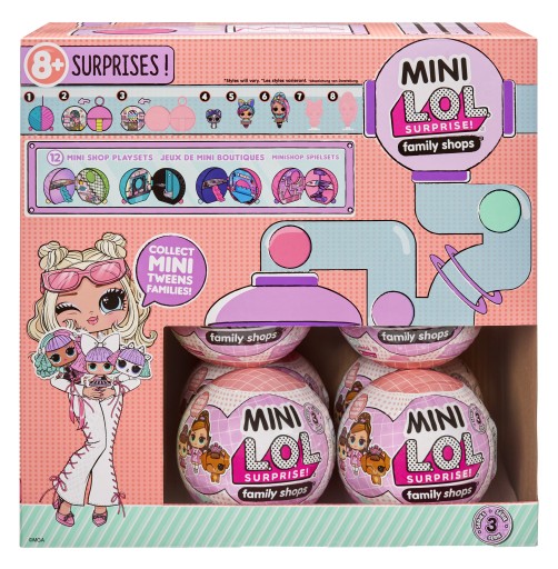 Przedstawiamy serię 3 kolekcji rodzinnej MINI L.O.L. Surprise! Nasze lalki FIERCE TWEENS są teraz dostępne w rozmiarze mini i sprowadziły swoją ekipę! Zbierz wszystkie 12 zadziornych postaci z kolekcji Mini Family Tween. Każda kula zawiera wyjątkowy zestaw do zabawy, który odzwierciedla styl rodziny znajdującej się w środku.
