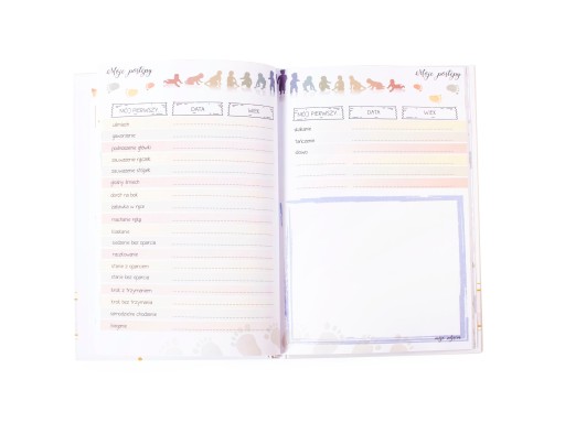 - miejsce na zapiski wszystkich najważniejszych wydarzeń z Waszego wspólnego życia, począwszy od planów poprzez dzień narodzin aż do dwóch lat