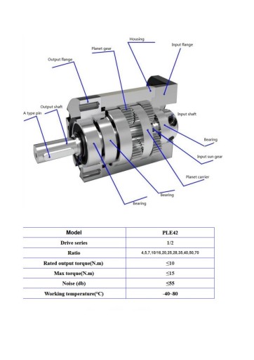 Планетарный редуктор PLE42 i=70:1 шаговый BLDC