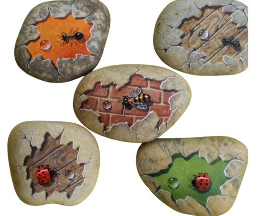 Zestaw zawiera gładkie, ręcznie wyselekcjonowane kamienie, które stworzone są z trwałego materiału. Każdy kamień ma unikalny kształt, co dodaje wyjątkowości i inspiruje do tworzenia różnorodnych dzieł sztuki. Dzieci mają okazję malować nie tylko na powierzchni kamienia, ale również na jego bokach, tworząc efekt głębi i trójwymiarowości.