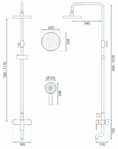 - Skład zestawu: Bateria, wąż prysznicowy ze słuchawką, deszczownica