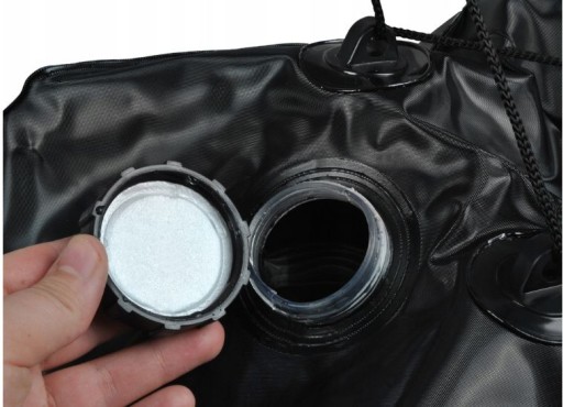 Dzięki czarnemu tworzywu, prysznic dobrze pochłania światło, a woda nagrzewa się na słońcu szybko. Tworzywo jest nieprzemakalne, a szczelny korek sprawia, że prysznic możesz bezpiecznie przechowywać.