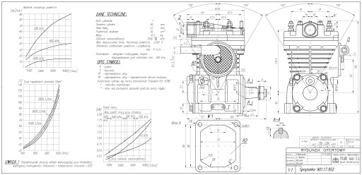 - Sposób smarowania: UD - smarowanie obiegowe (obiegowo-rozbryzgowe) z doprowadzeniem oleju pod ciśnieniem od silnika min. 200kPa
