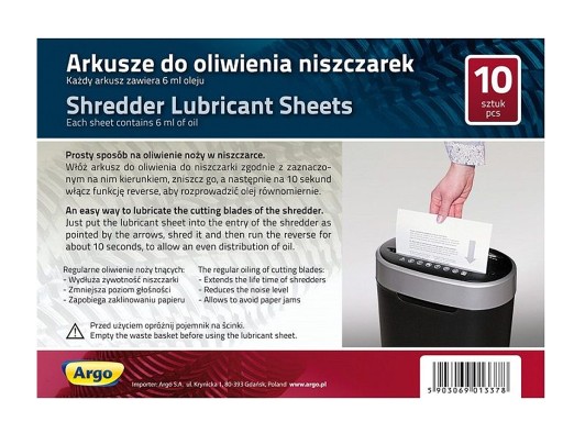 Nie trać czasu na kosztowne naprawy - wybierz arkusze do oliwienia niszczarek Argo i ciesz się dłuższą żywotnością swojego urządzenia!