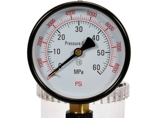 - Czytelny manometr ze skalą w jednostkach bar i psi