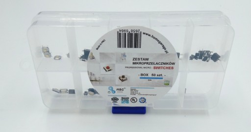 POLECAMY Wysokiej jakości komplet mikroprzełączników (Micro Switch) w specjalnie dobranym pakiecie 50 sztuk (10 modeli najczęściej stosowanych micro switch'y po 5 sztuk). W zestawie najbardziej popularne switche stosowane w pilotach i kluczykach samochodowych oraz w sprzęcie car audio.