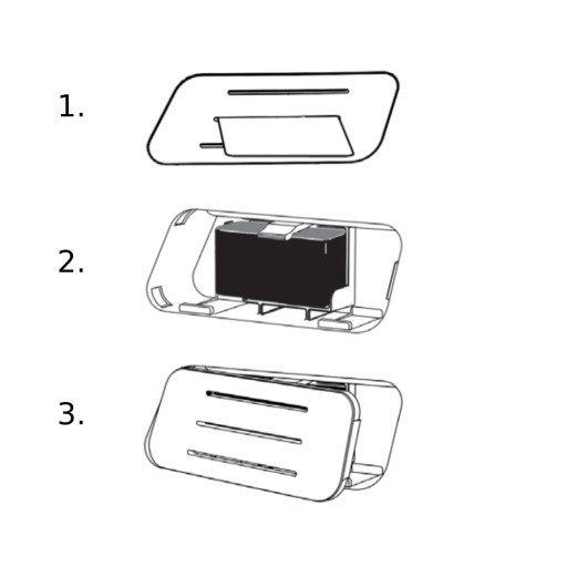 - Załóż ponownie pokrywę baterii, umieszczając w obudowie lewą stronę z dwiema klapkami.
