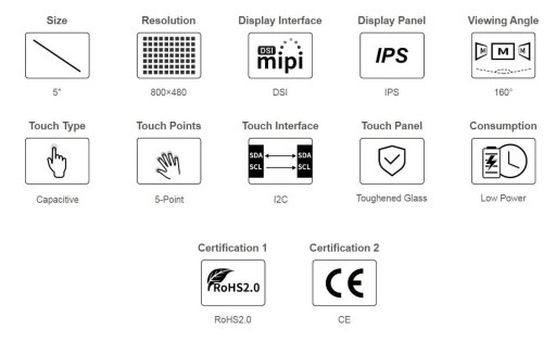 - Pojemnościowy wyświetlacz LCD DSI 5" 800 x 480 x1