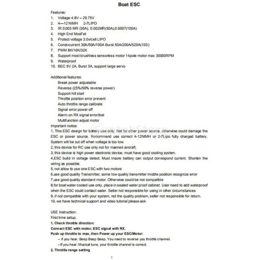 Wodoodporna konstrukcja, specjalna dla modelu statku, z systemem chłodzenia wodą, aby zapewnić dobre odprowadzanie ciepła przez urządzenie, dzięki czemu ESC ma większą odporność na prąd.