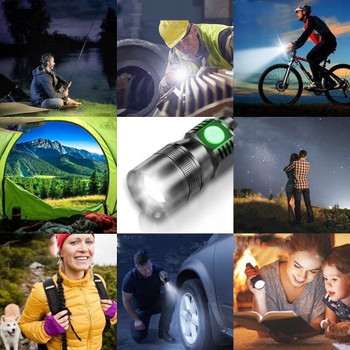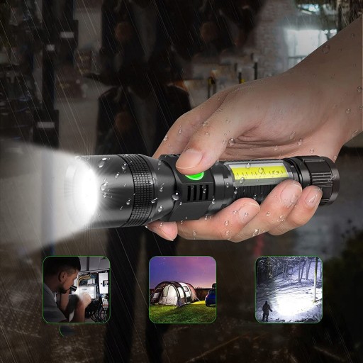 Zoom teleskopowy i regulowana ostrość - zoom szeroki do wąskiego strumienia latarki może regulować intensywność światła lub obszar oświetlenia za pomocą łatwego w obsłudze zoomu pociągu. Zakres ostrości można ustawić do różnych zastosowań, rozciągając go, aby ustawić ostrość i uzyskać wymagany strumień punktowy i punktowy.