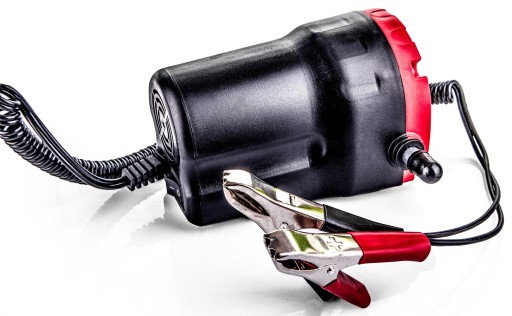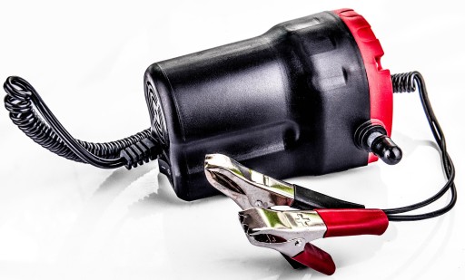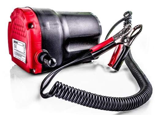 ✔️ Aby korzystać z urządzenia, wystarczy je podpiąć do akumulatora za pomocą zacisków, włożyć przewód do zbiornika z olejem, a następnie włączyć pompę za pomocą tylnego przycisku