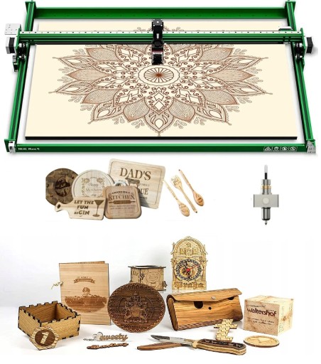 - Grawerowanie i wycinanie w różnorodnych materiałach dzięki głowicy o mocy 40W