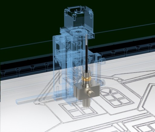 - silnik w osi Z, który pozwala na wykorzystanie urządzenia jako ploter rysujący (głowica w zestawie) oraz ploter tnący (nożem - do dokupienia osobno)