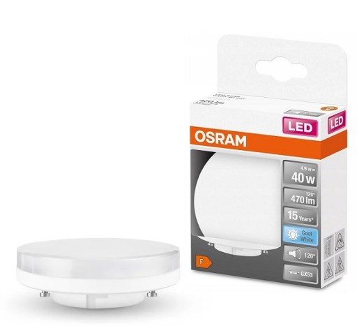 Oferowana na tej aukcji żarówka LED PARATHOM GX53 40 firmy OSRAM z trzonkiem GX53 i mocy 4,9W stanowi wysoko-energooszczędny zamiennik klasycznego reflektora (o mocy 40W), który zapewnia idealne, neutralne światło o temperaturze barwowej 4000K.