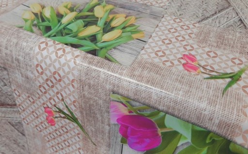 Клеенка, клеенка, скатерть, ТЮЛЬПАНЫ, ЦВЕТЫ, БЕЖЕВЫЙ