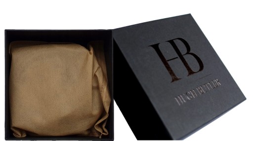 Skórzany pasek męski firmy Hugh Butler, to idealny pomysł na prezent - posiada piękne pudełko oraz dodatkowy bawełniany woreczek, w który zapakowany jest pasek.