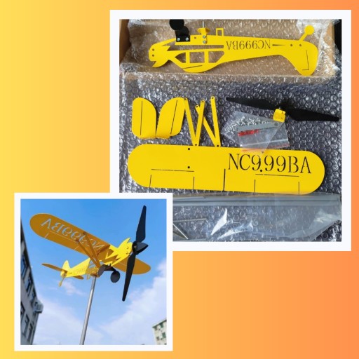 Samolot ogrodowy dachowy wiatrowskaz wiatrak to dekoracyjny element, który można umieścić na dachu domu lub w ogrodzie. Oto opis tego przedmiotu: