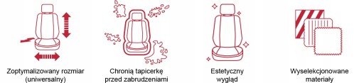 Pokrowce uniwersalne ze względu na przeznaczenie do różnych modeli samochodów osobowych nie posiadają wycięć na pasy oraz zagłówki, których rozmieszczenie w poszczególnych modelach jest różne. Wszelkie potrzebne otwory należy wykonać samodzielnie po dokładnym dopasowaniu i montażu pokrowców. Pokrowce są wykonane z materiałów laminowanych pianką oraz podszewką dzięki czemu ich struktura nie ulegnie popruciu.