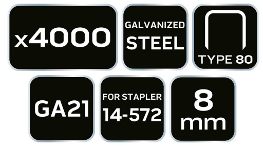 Zszywki galwanizowane do zszywacza pneumatycznego (14-572), GA21, Typ 80 (380), długość 8 mm, 4000 s