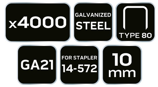 Zszywki galwanizowane do zszywacza pneumatycznego (14-572), GA21, Typ 80 (380), długość 10 mm, 4000