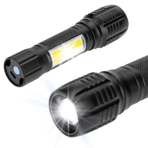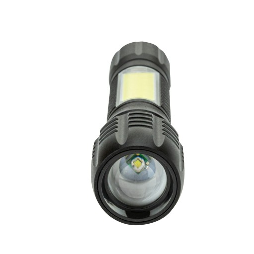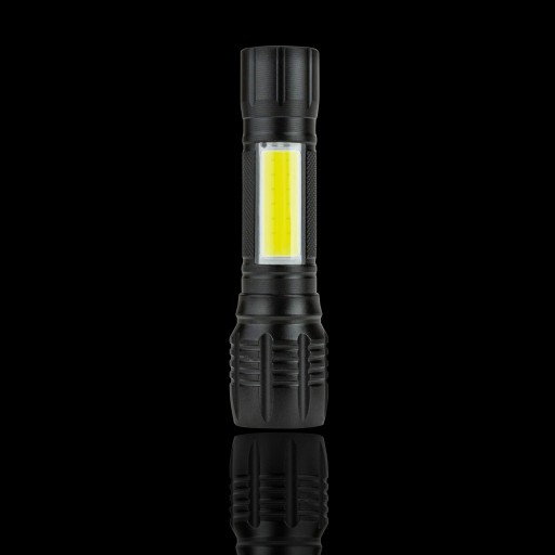 Latarka posiada mocne światło z możliwością przybliżenia ZOOM. Jest w stanie oświetlić bardzo duży teren lub bardzo odległe miejsce. Wbudowany tryb stroboskopowy SOS może pełnić nie tylko funkcję ostrzegawczą i przywołującą pomoc, ale może posłużyć również do oślepienia napastnika w celu samoobrony. Korpus latarki wykonany jest z trwałego i wytrzymałego aluminium, co zapewnia wysoką odporność na uszkodzenia mechaniczne oraz na warunki atmosferyczne, oraz inne czynniki jak pył, kurz, piasek. Jej rozmiary sprawiają, że jest idealna do spakowania w kieszeń czy plecak i wyruszenia na przygodę – pieszą, rowerową lub biwak. Latarka charakteryzuje się: