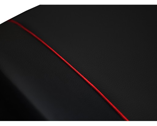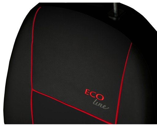 Pokrowce uniwersalne ECO LINE wykonane są z wysokogatunkowej czarnej skóry ekologicznej laminowanej pianką oraz stabilizującą podszewką. Ich klasyczny i unikatowy wygląd podkreśla wzmacniająca szwy lamówka, która oddziela boki pokrowca od pasa środkowego. Dodatkowo możliwość wyboru jej koloru nadaje indywidualny charakter pokrowcom. W lamówkę został wszyty stabilizujący sznurek, dzięki czemu w procesie eksploatacji nie będzie się ona załamywać lecz zachowa swoją funkcjonalność oraz walory estetyczne.