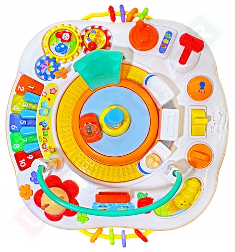 Ze stolikiem nie można się nudzić, pomaga odkrywać świat, a nauka staje świetną zabawą. Jest bardzo kolorowy, stwarza radosną atmosferę i przyciąga uwagę dziecka.