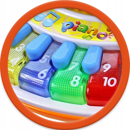 - Duże klawisze odtwarzają wymawianie liczb, małe klawisze odtwarzają piosenki