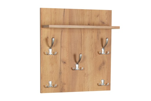 - Wieszak posiada 3 haki duże i 2 małe oraz półkę