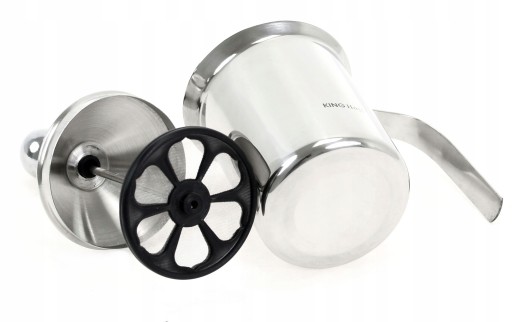 Specjalny profil krawędzi spieniacza umożliwia nalewanie jego zawartości bez rozlewania.
