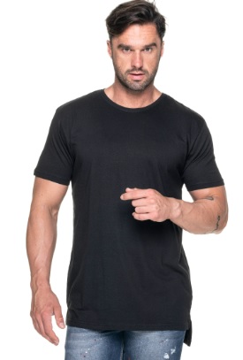 ФУТБОЛКА МУЖСКАЯ С ДЛИННОЙ СПИНОЙ, ХЛОПОК, ЧЕРНАЯ Extend PROMOSTARS R. S