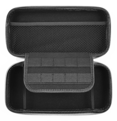 Etui jest idealnie dopasowane do Twojej konsoli Nintendo Switch i Nintendo Switch OLED - idealnie ją zabezpiecza. Wewnątrz posiada specjalne przegródki mieszczące aż 10 kartridży z grami. W górnej części futerału znajduje się specjalne miejsce na przechowywanie akcesoriów do konsoli takich jak ładowarka, powerbank, słuchawki, pudełka z gier, itd.
