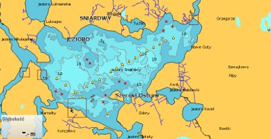Mapa obejmuje następujące jeziora z dokładnością do 1 metra (wraz z batymetrią):