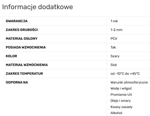 Osłona krawędziowa z PVC o zakresie grubości 1-2mm. Posiada stalowe wzmocnienia. Sprzedawana w metrach bieżących.