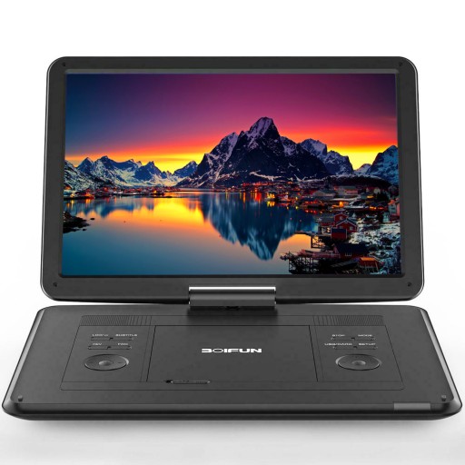 Przenośny odtwarzacz DVD BOIFUN wyposażony jest w obrotowy ekran HD o przekątnej 15,6 cala i rozdzielczości 1280*800. Ulepszony ekran może złagodzić zmęczenie wzroku spowodowane długotrwałym oglądaniem. Dzięki funkcji obrotu o 270° i obracania o 180°, zapewnia on ekstremalne wrażenia wizualne i łatwe pozycjonowanie.