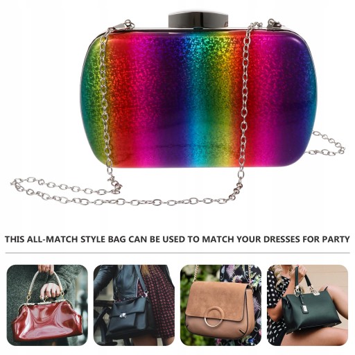 Ta damska torba wieczorowa przyjmuje wysokiej jakości materiał i kolor tęczy, modny styl i niewielka waga zapewniają jej szerokie zastosowanie. Prosty i przenośny, który podkreśli Twoją wyjątkową charyzmę. Świetne na plażę, kolację, weekendowe podróże, randki i codzienne użytkowanie.