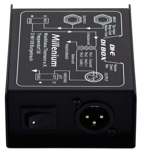 - Posiada rezystor do podłączeń źródeł z b. wysokim poziomem sygnału (np. gitara)