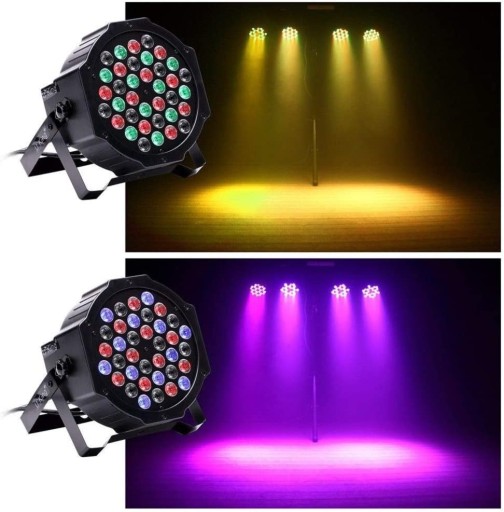 - RGB LED Par Lights: Par LED z jasnymi efektami świetlnymi z jasnymi 36 wielokolorowymi diodami LED RGB, które można łatwo kontrolować za pomocą pilota, idealne do efektów świetlnych na imprezach dyskotekowych DJ-ów.