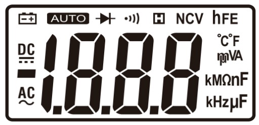 - Natężenie prądu stałego: 200μa-10 A ± (1.5% rdg + 3dgt)