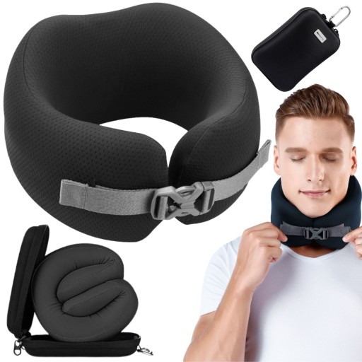 ✈️Poduszka ortopedyczna na szyję EASYNAP Pillow z Etui CZARNA ✈️