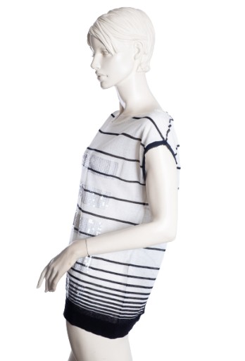 Oversizowy dzianinowy top w paski. Ozdobiony delikatnymi cekinami.