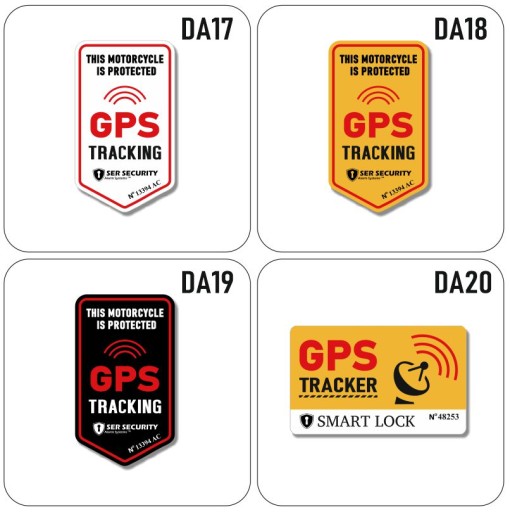 Naklejka ostrzegawcza, ochronna GPS TRACKING, ALARM SYSTEM pasuje do marek motorów : KAWASAKI, HONDA, YAMAHA, SUZUKI, HARLEY-DAVIDSON, TRIUMPH, APRILIA, DUCATI, BMW i innych.