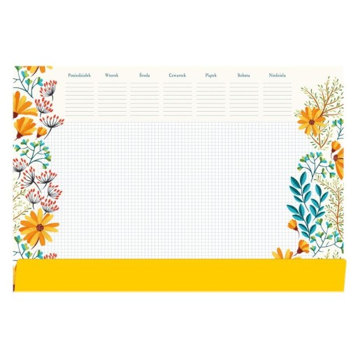 Podkład na biurko 35x50 z tygodniowym planem zajęć. Ozdobny kolorowy nadruk z motywem kwiatów.